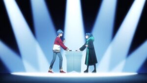 Third-year middle school student Yu-yu Kondo lives in Kanazawa city of the country of Kaga. Being unable to reject requests, Yu-yu often gets caught up in his sister’s hobbies. When Yu-yu could no longer bear it and ran away from home, he was saved by Megumi Okura. Megumi invites Yu-yu to the Night Amusement Park “Wonder Hill” where her friends gather. The amusement park is where many youths of the Vanguard-centric group “Team Blackout” gather. And this is how Yu-yu encounters Vanguard and was drawn in by the appeal of Vanguard and the world and friends he had never seen before.