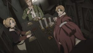 A 34-year-old hikikomori is kicked out of his home by his family after the death of his parents. After his eviction, he saves a group of teenagers from being killed by a speeding truck, but loses his life in the process. When he comes to, he realizes he has been reborn as Rudeus Greyrat, in a world of swords and sorcery.
